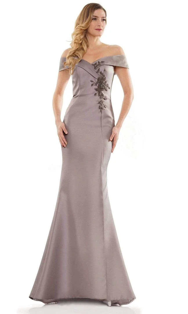 Be strikingly gorgeous in this Marsoni by Colors MV1140 dress. This evening dress fashions an off shoulder neckline in a fitted bodice with beaded appliques and princess seams. The skirt reveals a trumpet silhouette while the back shows a mid-open back with back zipper closure to complete the look. Be the lady of the night in this Marsoni by Colors creation.