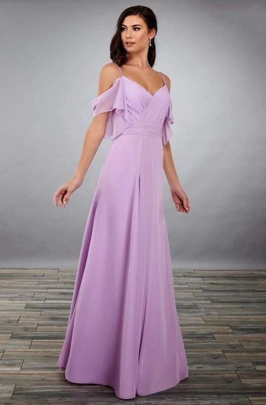 | Details: | Soft Off-the Shoulder Sleeves, Cold Shoulder Cut Out Detail, Draped Sweetheart Neckline, Beaded Straps, Ruched Bodice, Open V-Back, A-line Silhouette |