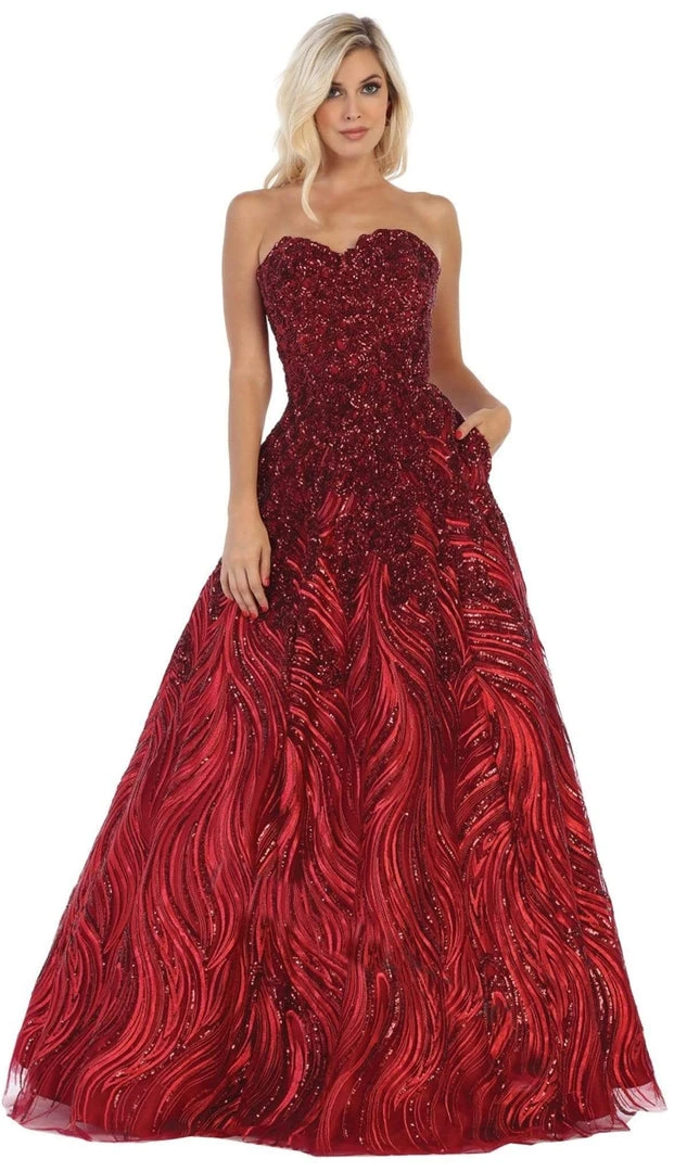 Take their breath away with this stunning look from May Queen RQ7728. This fully embellished gown brandishes in a strapless, sweetheart neckline with fitted bodice styled with a lace up closure for an adjustable fit. From the waist begins a full length ballgown skirt with pocket. This May Queen creation is simply captivating!