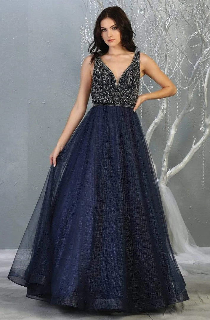 Bloom with loveliness in this detailed dress from May Queen RQ7860. This long gown showcases a sleeveless, plunging V-neckline with fitted bodice adorned with embellishments. The dress flaunts a low V-back and has a full length A-line skirt. Create magical moments as you revel in this May Queen look.
