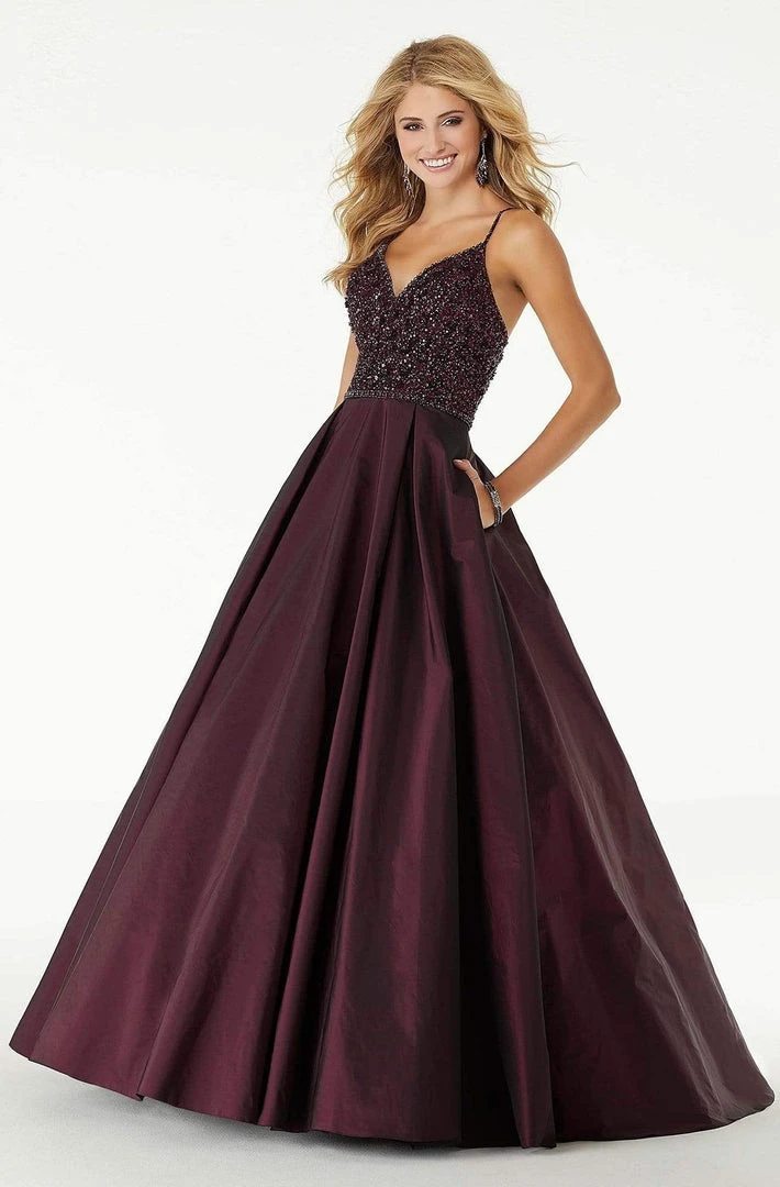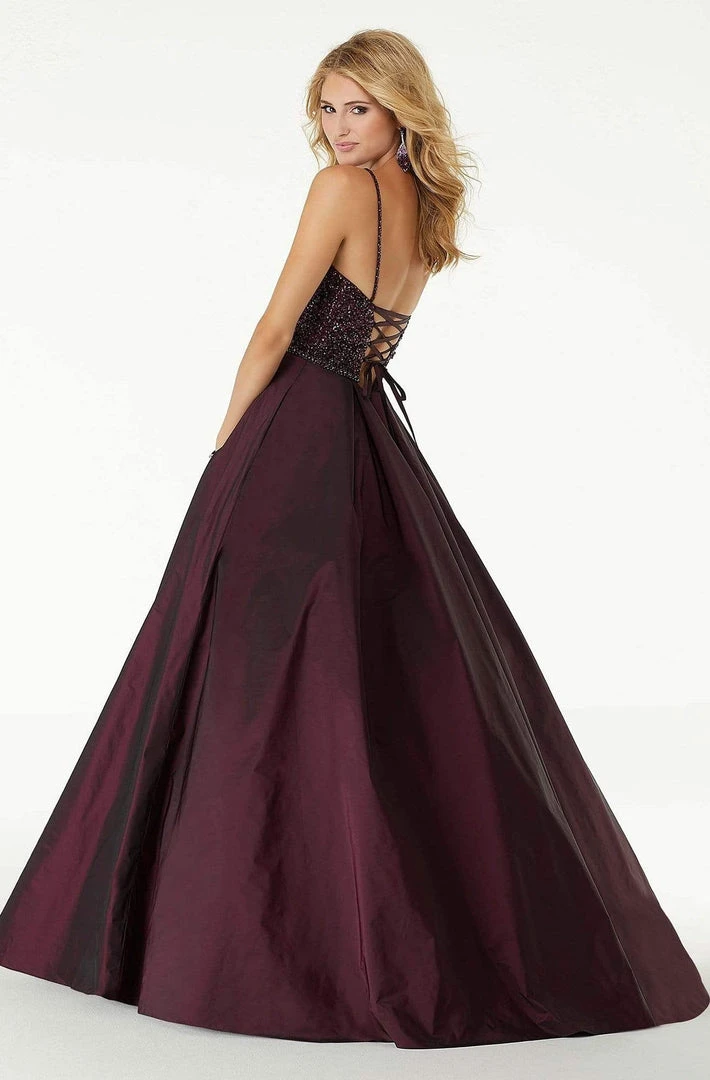 You are sure to be the life of the party when you are wearing this dazzling Mori Lee 45086. This long ballgown features an embellished fitted bodice matched to a voluminous, long ballgown silhouette. It is made with taffeta fabric and has lace-up back style. This Mori Lee creation will absolutely make you feel special! Model is wearing Black color.