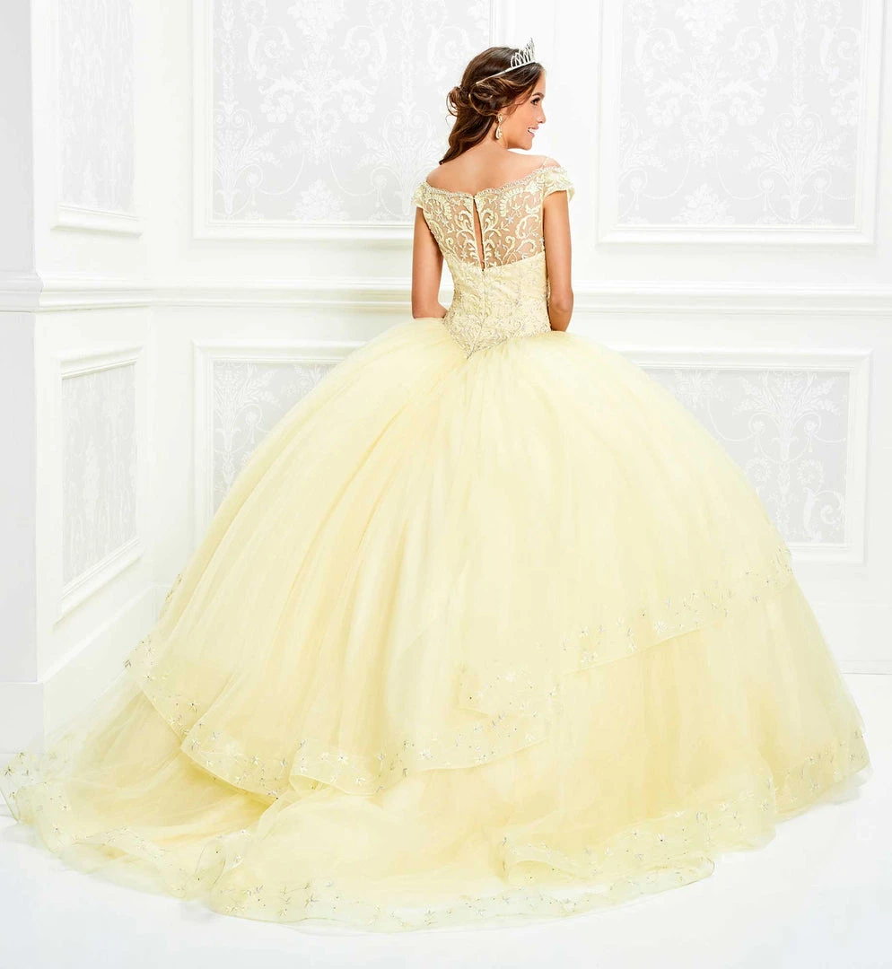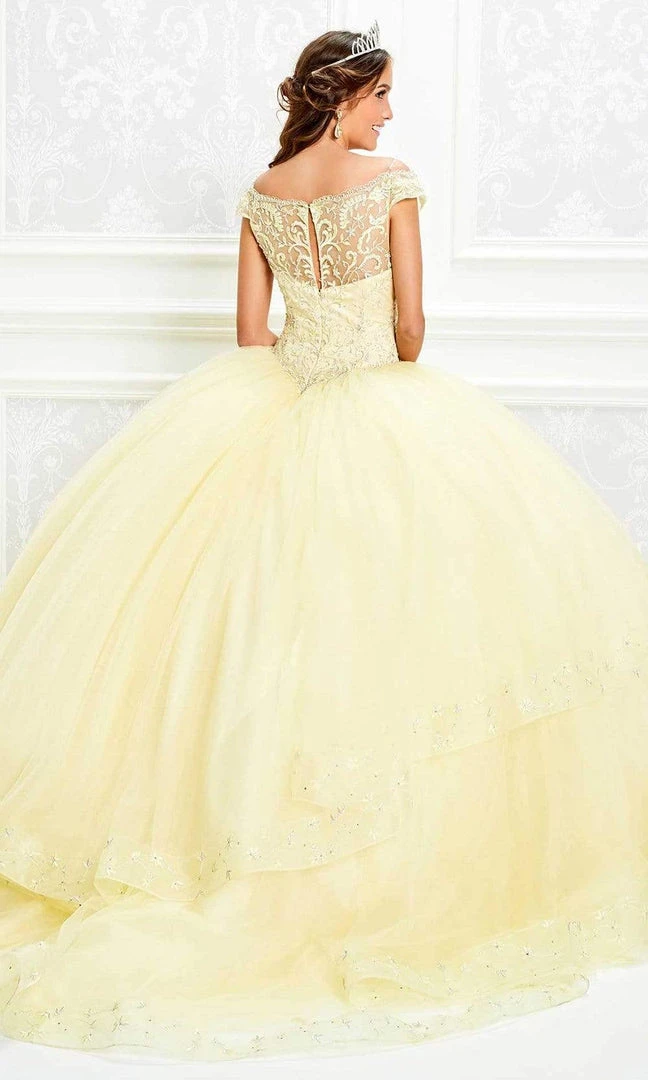 Parade the elegant and sophisticated sense of style in this Princesa by Ariana Vara PR11926. This gown fashions an off shoulder neckline with cap sleeves. The bodice of this dress is embellished with glowing bead work that will make you stand out. The tulle ball gown skirt showcases an encrusted ruffle creating a unique look to the skirt. The back of this dress is designed with applique and features a zipper closure. This dress comes with a matching shawl. Get glam in this fabulous Princesa by Ariana Vara creation.