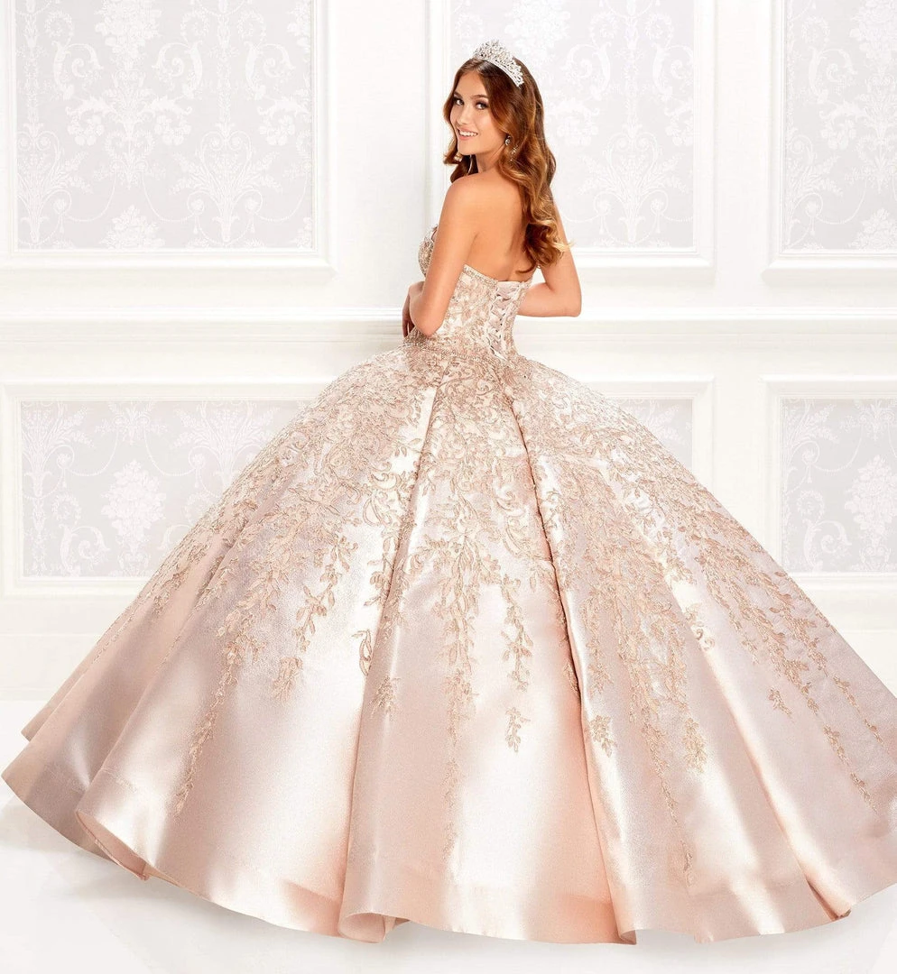 Dress to impress with this Princesa by Ariana Vara PR22024. This novelty and embroidered lace ball gown features a sweetheart neckline, beaded bodice, basque waist and a corset back. Matching jacket included. Princesa by Ariana Vara is an absolute breathtaking look.