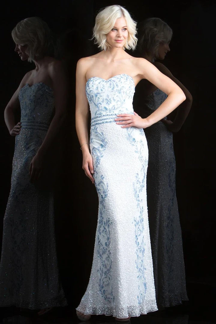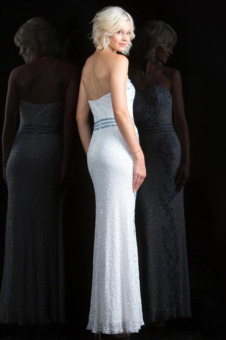 | Details: | Strapless, Ornate Spaghetti Straps, Beaded Scrolls, Sequins, Mid-Open Back, Back Zipper Closure, Full Length Hem |