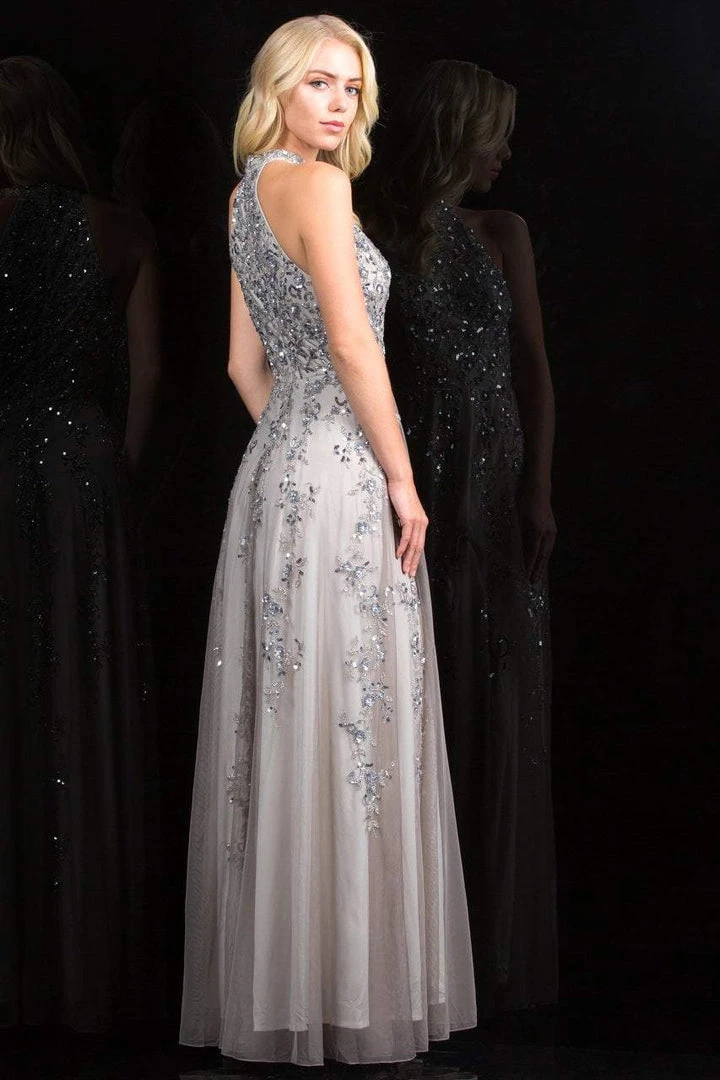 Appear like a modern princess in this lavishly ornate Halter top style gown by Scala 48858 . Features fitted bodice and cut-in shoulders to flaunt those sexy toned arms. Embellished with exquisite jewel beads that flows down throughout the rest of the dress, this A-line ensemble will let you dance and move flawlessly. This Scala creation is simply captivating!