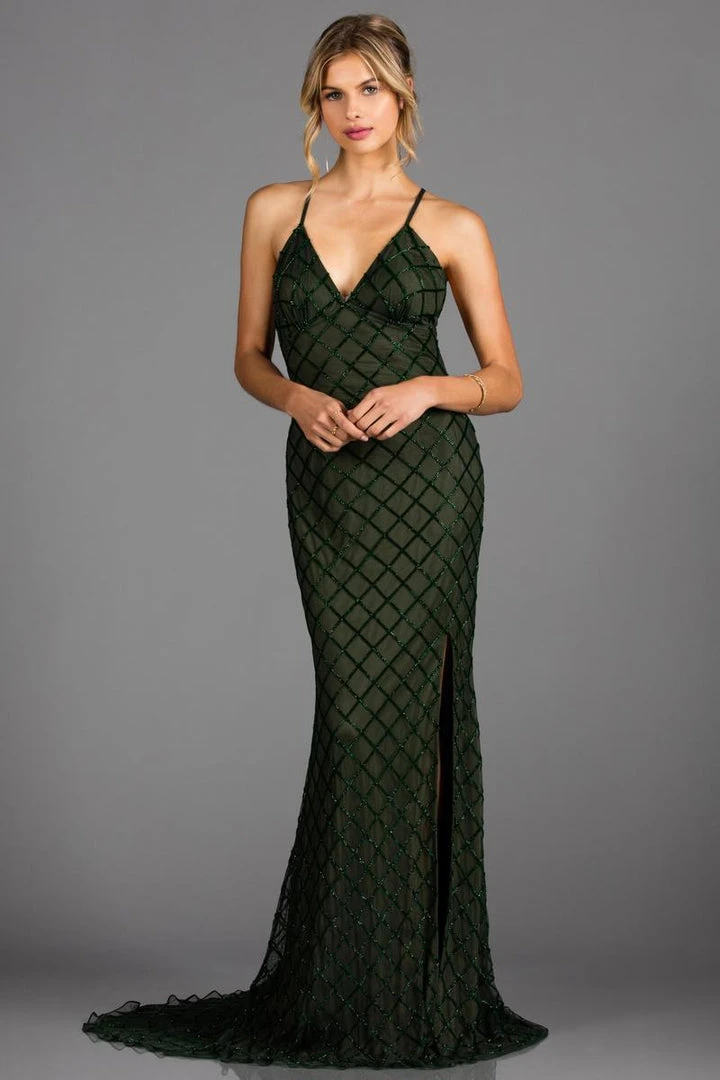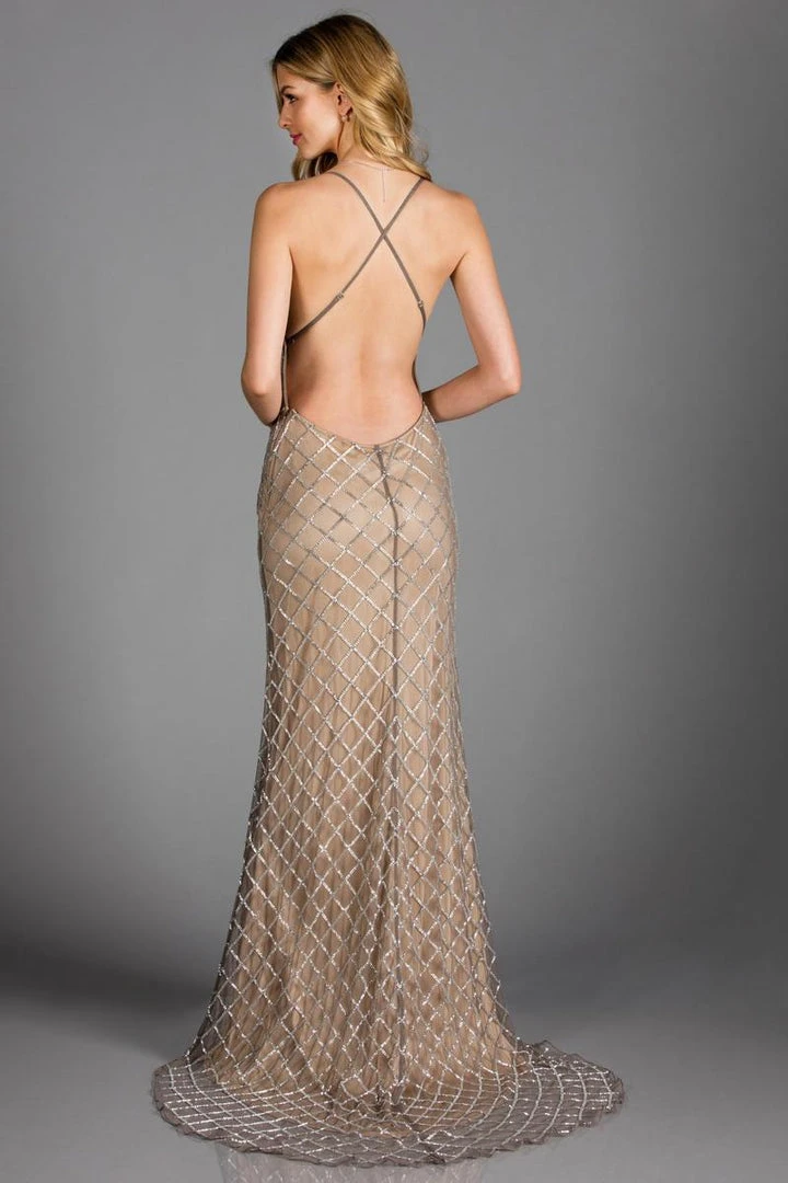 Take their breath away as you make your grand entrance wearing Scala 48923 long evening dress. This dazzling long formal dress features an all over beaded embellished sheer overlay on fitted silhouette inner lining. Features a V neckline with adjustable thin shoulder straps that crisscrossed and extends through the alluring low open back. The dress is fitted through the hips and reveals a sultry side slit creating a fine flare finish as it touches the floor with back train. Make it a romantic occasion with this glamorous Scala dress, a perfect choice for this year?ÇÖs Homecoming or at any glitzy formal party.
