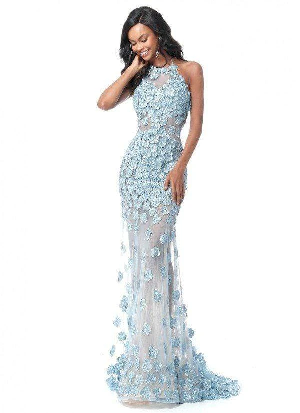 Create a special moment as you don this design by Sherri Hill 51660. This floral applique gown flashes a sleeveless, halter neckline with fitted bodice styled with an open back. The skirt highlights your figure with a full length trumpet silhouette. Take your seat on the throne in a queenly gown from Sherri Hill.