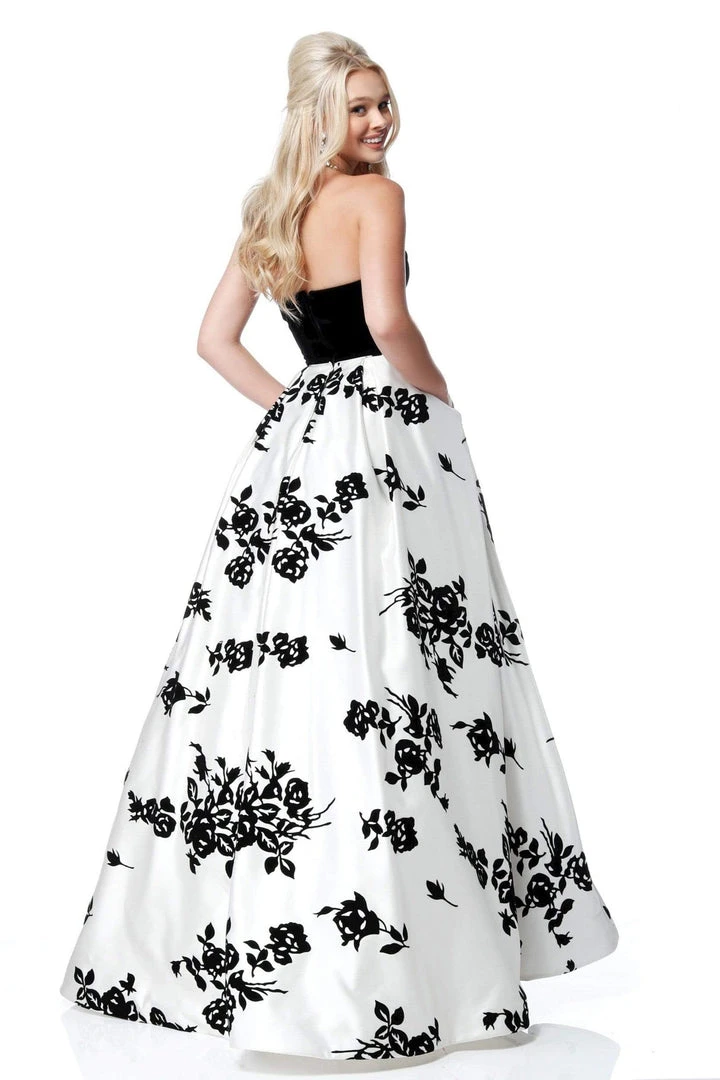You will be an enchanting beauty in Sherri Hill 51685. Showcases a strapless, straight across neckline with a velvet fitted bodice. The satin skirt flourishes a ballgown silhouette with charming floral details. This Sherri Hill creation is truly a definition of glamour.