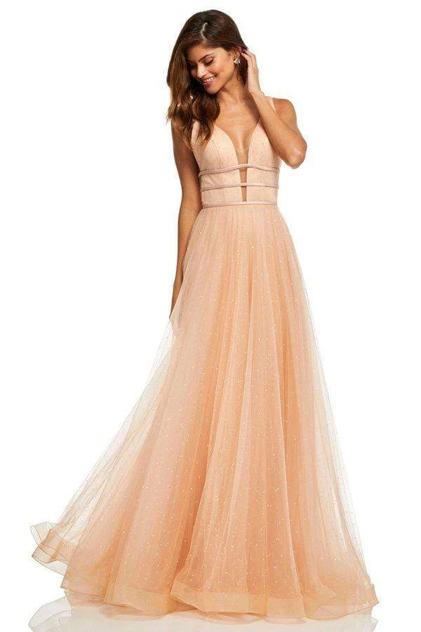 Enter the hall with grace and beauty in this lovely Sherri Hill 52737 evening dress. This charming gown showcases a fitted, beaded bodice framed with a plunging V neckline, illusion side panels, deep V back and triple satin ribbon bands around with midriff with back bow detailing. The long, a line skirt is tailored in tulle layers sprinkled with heat set sparkling stones and a sweep train. Be ready to capture the spirit of that romantic evening in this Sherri Hill piece.