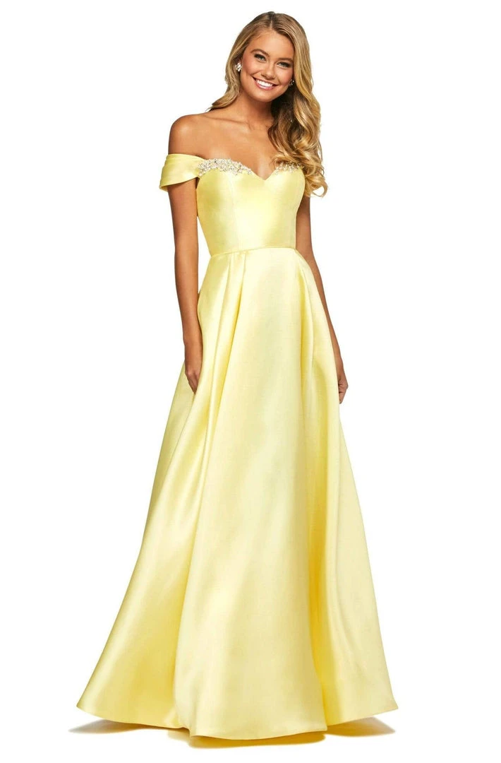 Show off your trendsetting style when you wear this design by Sherri Hill 53399. This mikado dress features an off the shoulder neckline with a fitted bodice and embellishments. The back has a visible zipper and from the waist flourishes a full length A-line skirt. This Sherri Hill dress is perfect for a girl who wants the standout style and flawless fit.