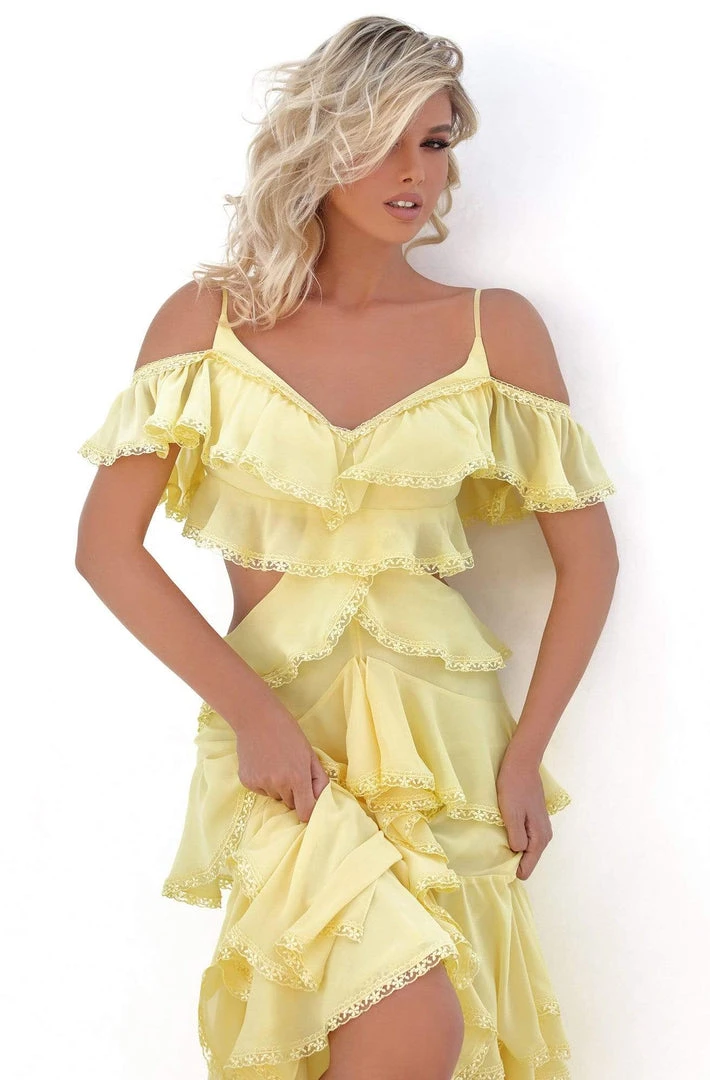 Tarik Ediz – 50682 V-neck Layered Sheath Dress Formal Gowns