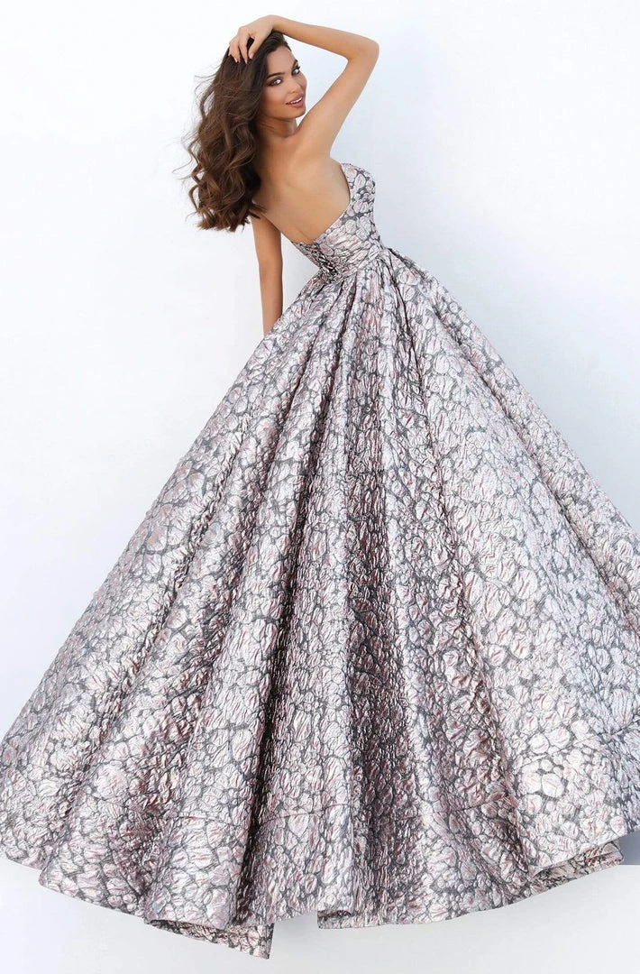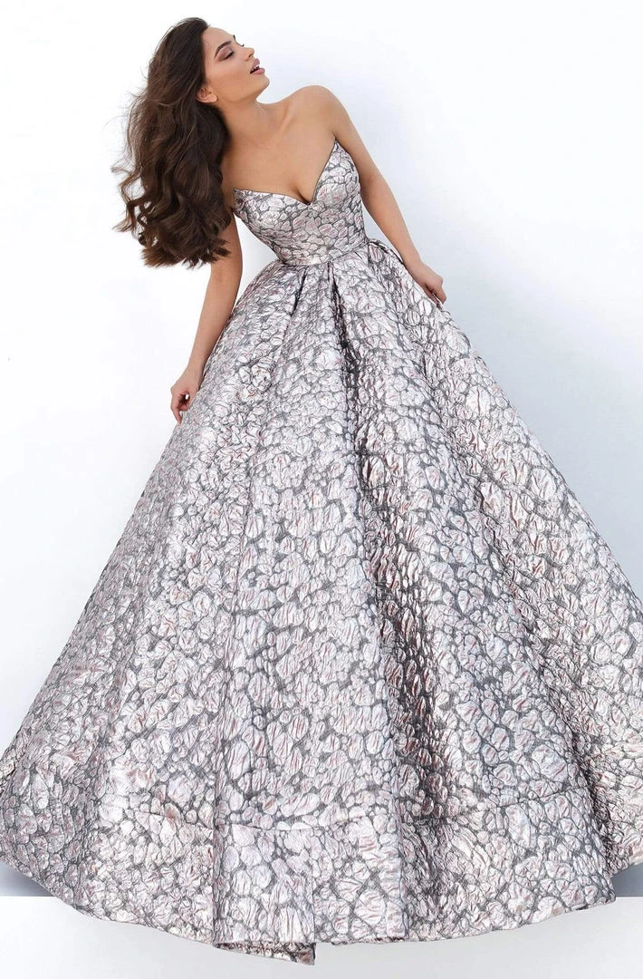 Dance the night away when you flatter your assets in this Tarik Ediz 93878 creation. Defined with a brocade-like texture allover its length, this stunned shows a deep v-neckline and a low open back on a strapless bodice. Fitted along the bodice and waist, the lushly pleated ballgown skirt cascades into a dramatic trailing train. Bring about opulence into that exclusive event in this Tarik Ediz masterpiece. Model is wearing the Silver/Salmon color.